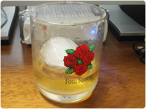 まあるい氷 検診を受けてから既に2週間以上が経過しましたが、その間ほとんど口にする事がなくなったビールです。その代わりといってはなんですが、近頃は懐かしいバーボンです。先日の熊本日帰りの旅で唯一、某ビール工場にて購入してしまった、まあるい氷を作る容器で作った氷で楽しんでます。まあ、気分ですから.... 2009-11-28 18:16