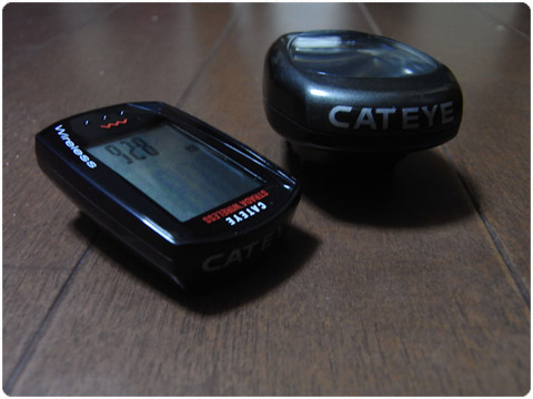 CATEYE STRADAワイヤレススピードメーター センサーの調子が悪く使えなくなったので、パーツ購入ついでにオーダーしたサイクルコンピュータです。パソコン画面の画像で見ているだけなので、大きさ等は実物を手にするまで分かりません。商品が届き実際に目にするとそのコンパクトさに驚きです。分かりにくい画像ですが、とにかく薄く小さくなりました。 2009-11-29 20:21