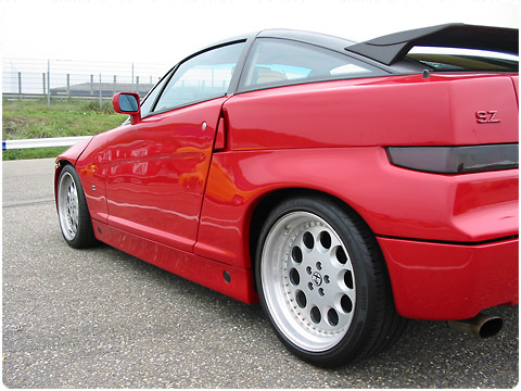 Alfa Romeo part2 今回のAlfaは、数多いアルファの中でもかなり好みの一台です。Alfa Romeo SZ(Sprint Zagato)です。V6 3Lエンジン搭載。ベースはAlfa75ということでリアドライブ。デザインは、Zagatoエンブレムがあるものの、フィアット・デザインセンターだそうです。 2009-12-07 20:18