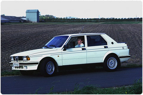 Alfa Romeo part5 フィアット傘下に入る直前の登場もあり、最後のFR「純血」アルファでとして愛好するマニアも多いといわれている「Alfa 75」です。実は、この75ですが、当時乗っていたバラードスポーツCR-Xが、クラッチ、エアコン..その他故障に見舞われだし、そろそろ買い替えを考えていた時に、最有力候補で商談もしてました(極上中古)。ちょうどバブル経済崩壊後で、ふところがどんどんと寂しくなり、次のクルマもCR-Xに落ち着きました。 2009-12-29 15:18