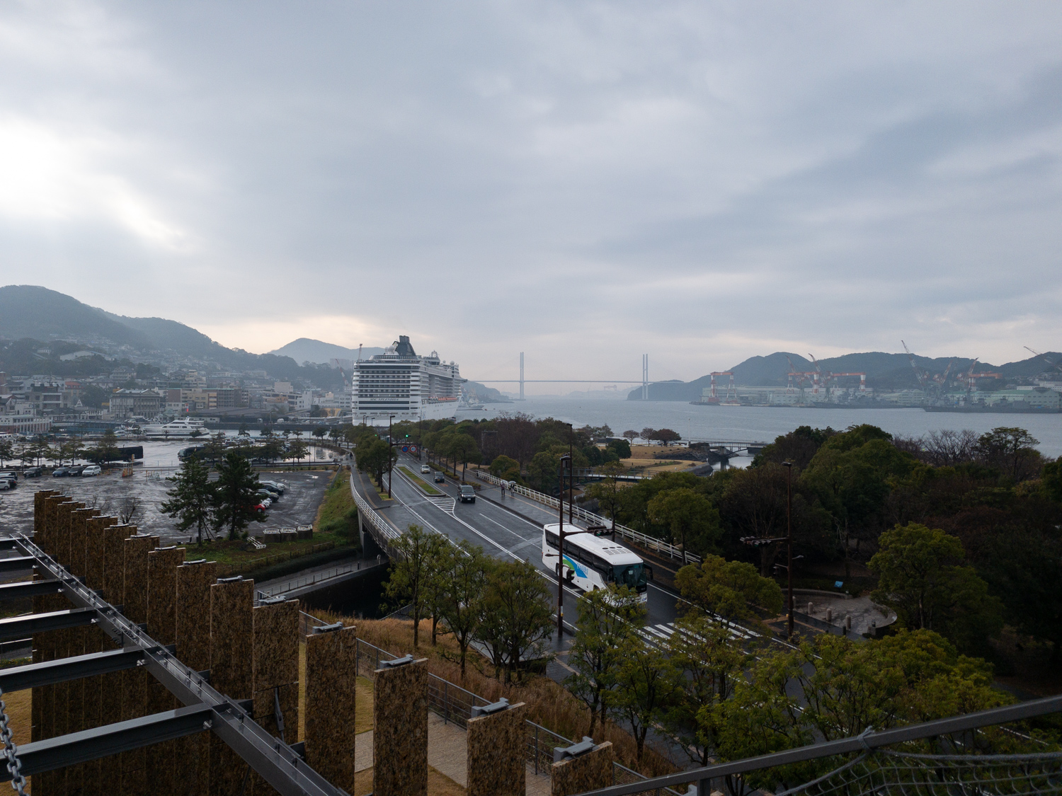 中国武漢で集団発生し、日本でもCOVID-19が大きな話題になり始めていたのではなかったかと思われる2019年のクリスマスの午後、その日昼休みに外食しようと、リンガーハットの出島店へ行った後に県立美術館の屋上から撮影した14万トンクラスの「MSC SPLENDIDA」です。