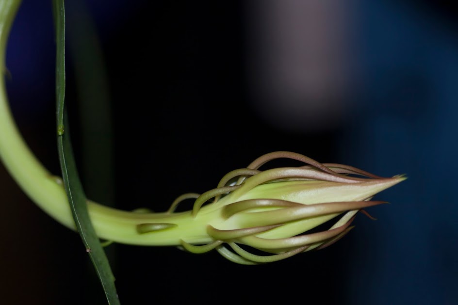 外は台風通過の影響で大荒れですが、部屋の中ではひっそりと、一夜だけの花。