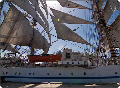 そんな帆船まつりですが、文句のつけようのない晴天の土曜日に、「日本丸」が帆を広げる時間に合わせて出かけてきました。「Diamond Princess」も入港しており、6隻の帆船の周りは、大勢の人で賑わっていました。