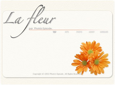 サイト内、地味に更新中(只今閉鎖中) このサイトも立ち上げて随分年数が経過しています。1999年頃から始めていますが、その間幾度かのデザイン変更や、追加 & 削除コンテンツもあり、地味に進化はしているかと...。今、仕事の合間に行っている作業は、コードの全面的な書き換え作業です。ブラウザで普通に閲覧している分には何も判りませんが、ページを構成しているコードを大幅にスリム化しています。昨日、「La fleur」が終了しました。ついでに画像もかなり追加しました。 2012-02-09 23:09