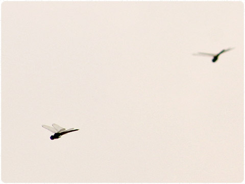 赤とんぼ 夕方この周辺では、沢山の赤とんぼの姿を見かけます。部屋の窓からも、散歩に出かけた時にも....それでどうにか、飛び交う赤とんぼの群れの写真を捉えてみたくなりました。レンズは古い300ミリズーム。うちのカメラだと480ミリ相当になります。本当は公園で撮るといいんですが、一人だと、ちょっと人目が気になるかも.....先ずは部屋から練習です。 2009-08-02 13:05