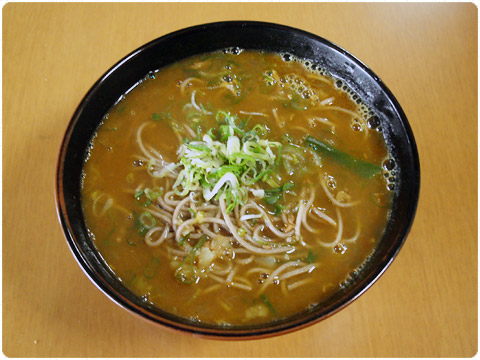 本日の昼食は.... 今日の思いつき簡単昼食は、カレーそばです。一食分にも満たない夕べの残りカレーが鍋にあったので、約、300ccの鰹だしを加え、一味唐辛子とブラックペッパーをじゃんじゃん振りかけ更にスパイシーに..、ゴロゴロしているジャガイモは鍋の中ですり潰し、いい感じになってきたところで、別に茹で上がったそばと合わせて完成。薬味葱を更に加えましたが、本当はカリカリに焼いた揚げのきざみが入るとよかったのですがそんな物は冷蔵庫にありません。でもかなり美味しかったです。 2009-06-12 16:14
