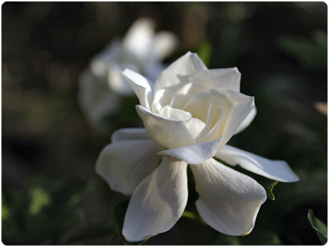 くちなしの花 庭に咲いてる白い花、妙に香りが強いので、もしやと画像検索をしてみると、やっぱり「くちなし」の花でした。....ところでこの数日、古いギャラリーの画像を元から再処理しています。デジタル以前の画像の、当時の画像処理がどうにも気に入らなくなった為なのですが、結構大変かもしれません。 2009-06-14 20:28
