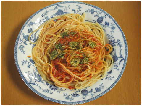 本日のパスタ 今日のパスタソースは、「ガーリックトマト」です。夏場は体が酸味を欲しがるようで、他にも「アラビアータ」を買い置きしてます。ところで近所にある数少ないスーパーですが当然の事なのか、店によって陳列棚に並んでいるパスタソースが違っています。当然同じ物もありますが、数件廻る事でより多くのバリエーションを楽しめるようです。 2009-06-22 12:53