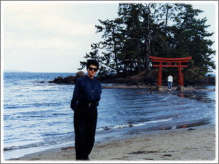 能登半島の付け根の東側海岸に位置する富山県氷見市。この街は寒ブリなど新鮮な海の幸で有名です。友人Yとふたりで海岸に近い旅館を予約して出かけた時の一枚。 写真は翌朝だと思います。R249を輪島市へと向かい、半島を一周したあと、京都へ帰ったのを覚えています。この場所は、半島先端付近、珠洲市手前の「恋路海岸」だという事が後に調べて判りました。