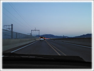...と楽しい事ばかりでもないのがこの時間帯でもあります。画像のR161号バイパス湖西道路は、快適なのもつかの間、都市部に近くなったこの地点、今まさに渋滞最後尾に近づいてきた瞬間です。
