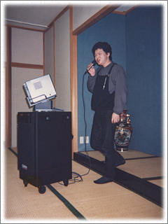 1990年代のはじめ頃ではないかと思われる1枚です。場所は北陸で、多分福井県だと思います。課(職場)のみんなで出かけた旅行の宴会中の場面だと思います。