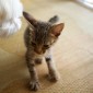 2014年秋、台風18号が接近通過した後に突如出現した弱々しいキジトラ模様の仔猫。保護から里親さんへの引渡し日までの記録です。